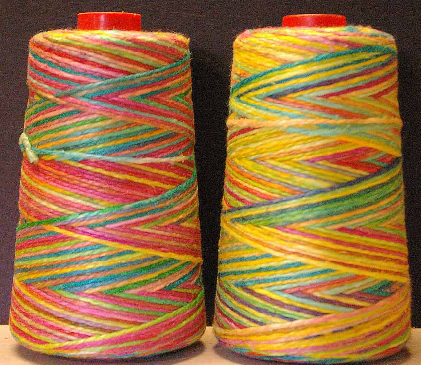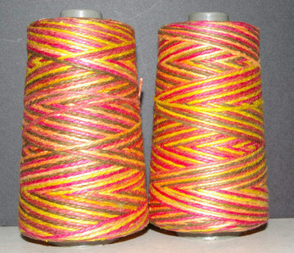 Silk scarf special 1 cone of Artisan silk and one cone of 20/2 dyed spun silk, 100 gram cone, $33.00,( 1 cone of Artisan silk $15 and 1 cone of 20/2 dyed spun silk $21, saving $3) 2 or more sets $28 each.