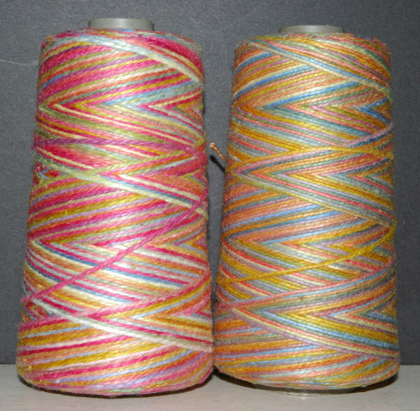 The pictures show 2 cones so you can see the differences in the space dyeing. Some of the new cones are a repeat of the original cones and have the same number.