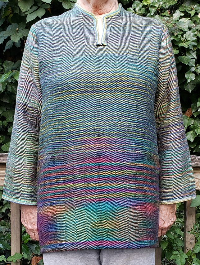 This is a hand tie dyed color fast variegated 100% noil silk.