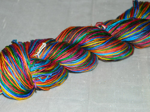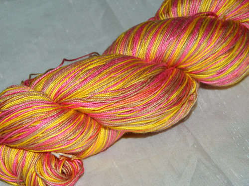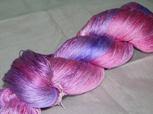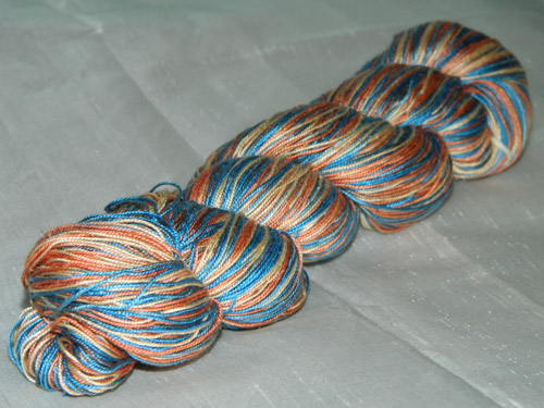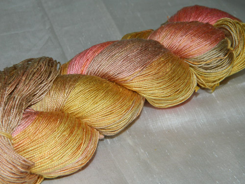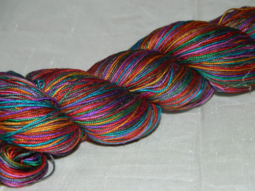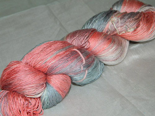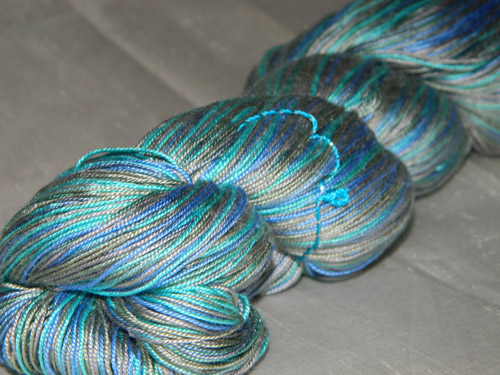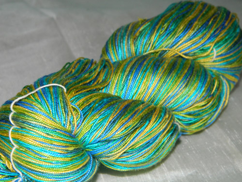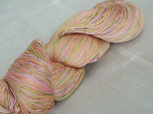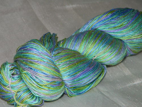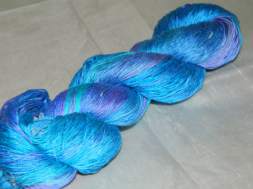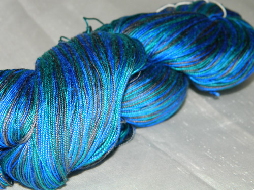 Each hand tie dyed variegated silk skein can be different, this is the nature of tie dyeing.