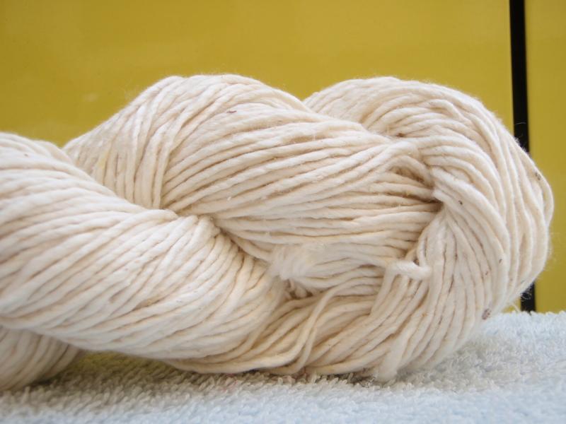This yarn is got from the roving stage of the silk manufacturing process. It is very soft and ideal for knitting purpose. Yardage: 250 yards per 100 Grams, Count: 2.5's NM Thickness DK Weight