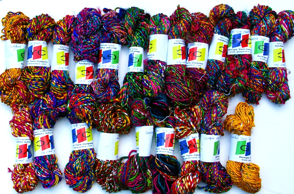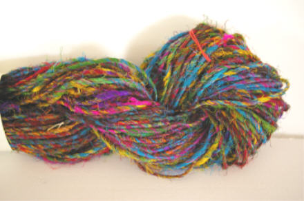 Carded and Combed Sari yarn. This is the same yarn as above except it has been carded and combed making it very soft. $11 skein or $100 kilo