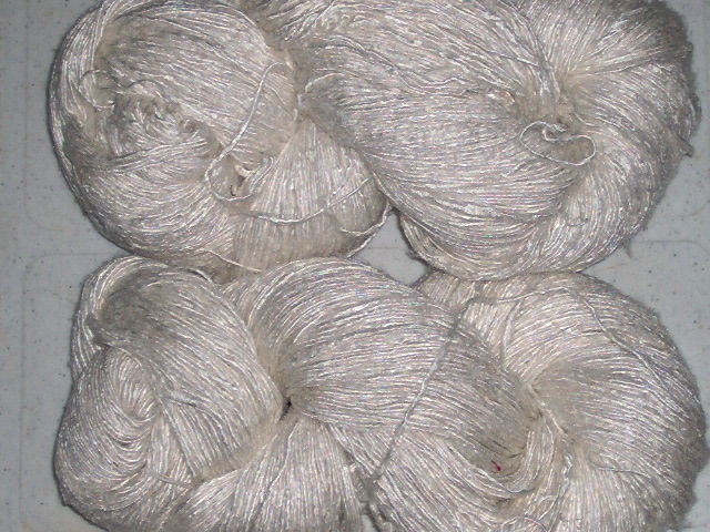 This yarn has been produced from the thrown silk fiber. Ideally used for knitting purpose. It has been bleached and hence it is bright white than the natural white color. Yardage: 450 yards per 100 Grams, Count: 4.5's NM Thickness Fingering Weight
